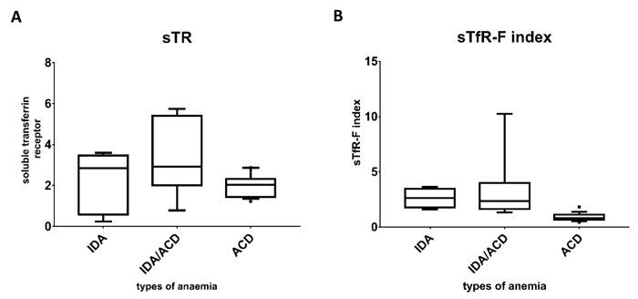 Serum soluble transferrin receptor (sTfR) is a truncated form of the transferrin receptor present on the surface of erythroblast in the bone marrow. The concentration of sTfR in the serum is inversely correlated with the intracellular iron content [5], unlike the other parameters of iron status it is not affected by inflammatory status and therefore it can be a better parameter in assessing functional iron status [6, 7].